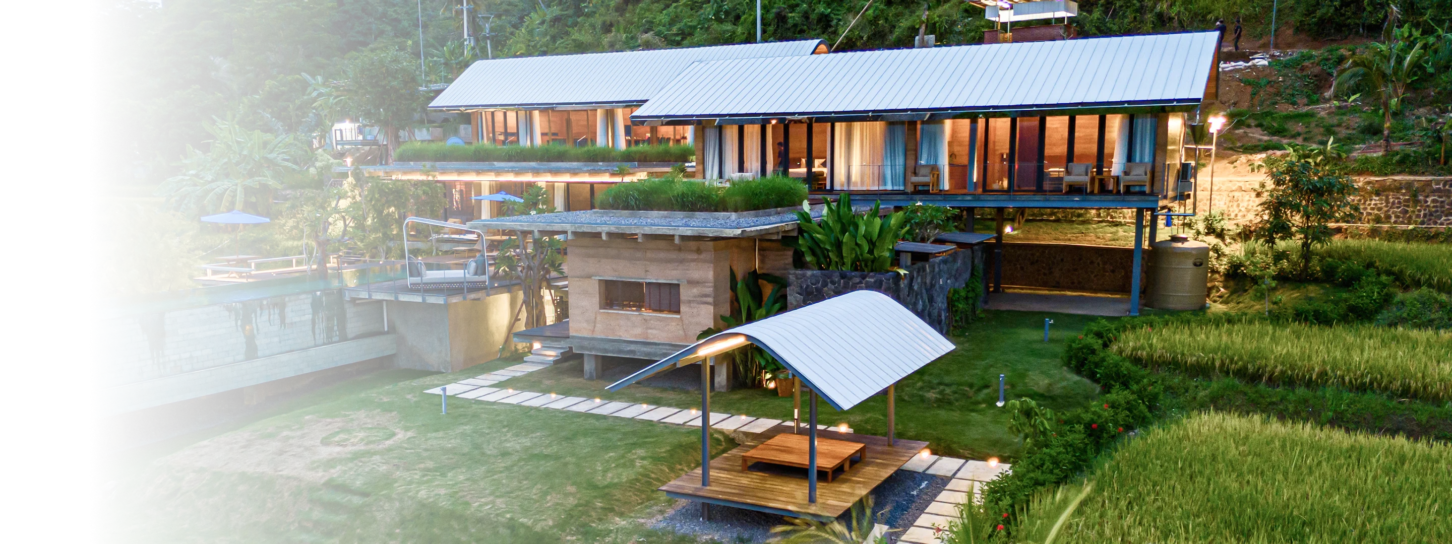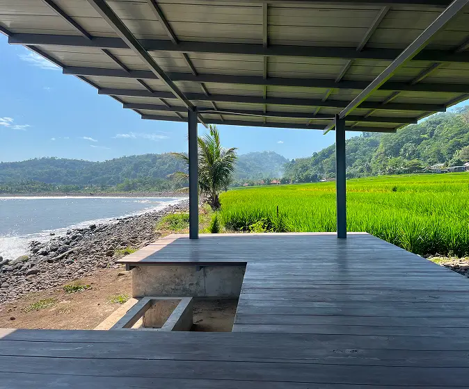 Located in Pantai Loji, the house sits between the hills and the open sea, with a paddy field that stretches all the way to the shoreline. The area is quiet and undeveloped, offering privacy, wide views, and a setting shaped entirely by nature.