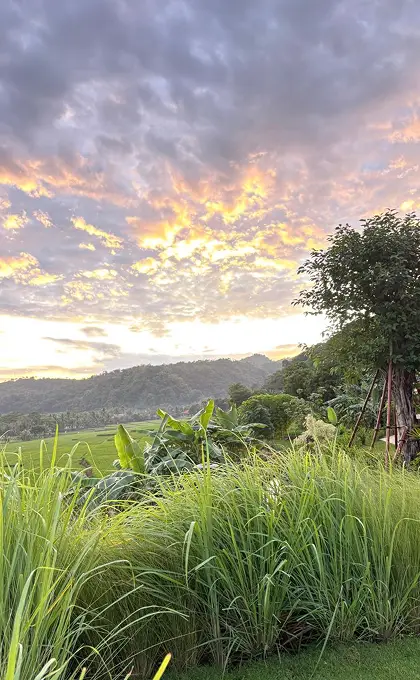 From the house, guests can watch the rhythm of growing rice as farmers work the fields and the landscape shifts week by week. It’s a simple, grounding experience connected to the pace of the coast and village life — with no schedules, no distractions.
