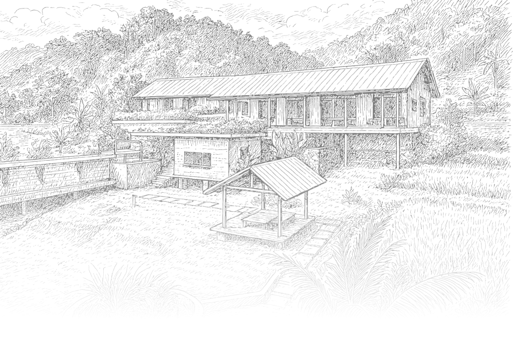 Between the sea and the hills of Pantai Loji lies a home built from the soil itself — a sanctuary of silence, slowness, and simplicity.