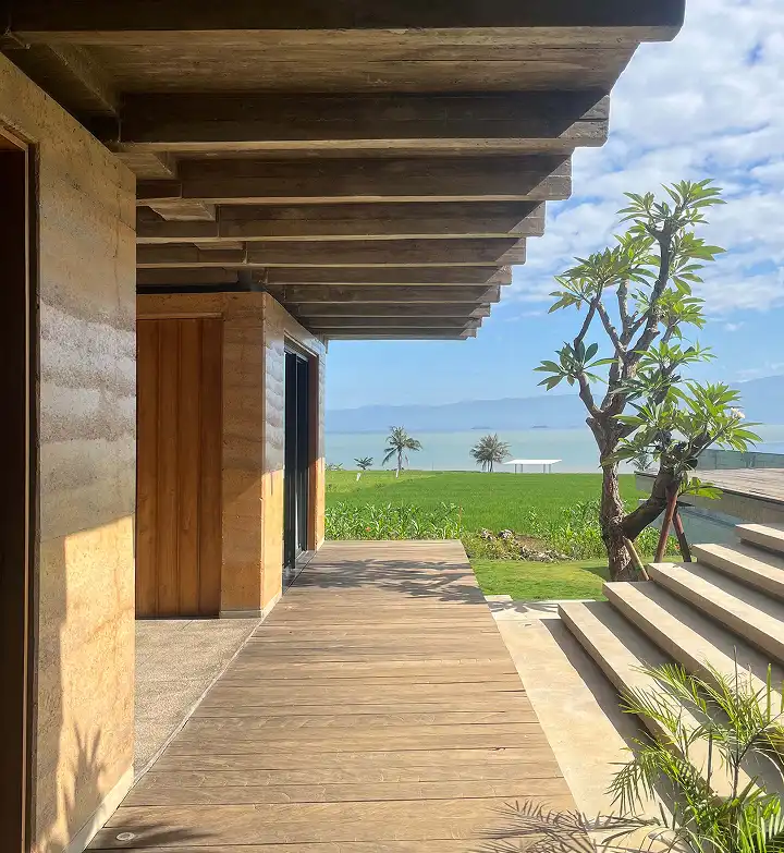 The thick earthen walls regulate indoor temperature without artificial insulation, keeping interiors calm, breathable, and comfortable even in intense coastal heat. Here, sustainability isn’t an add-on — it is the architecture.